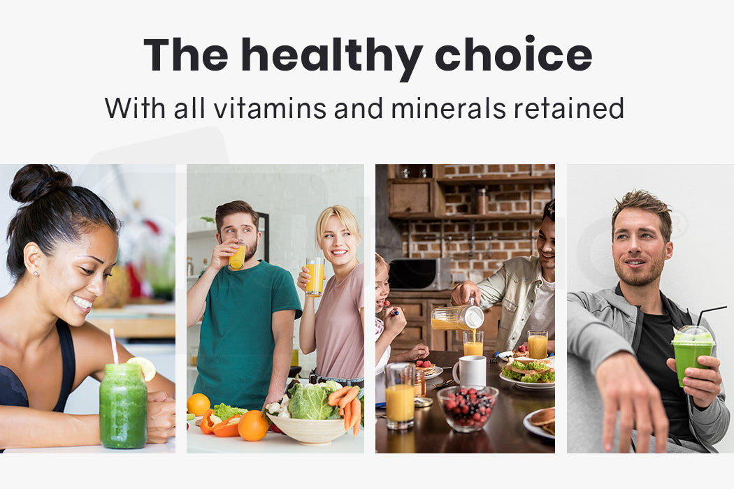 With an immediate boost to overall health, and benefits for weight management, skin quality and general wellbeing, juicing is more popular than ever! Cold press is when the juice is extracted slowly, without the heat associated with the traditional fast centrifugal process. This offers clear health, taste and yield advantages, and so it’s no surprise that slow juicing is sweeping the world!