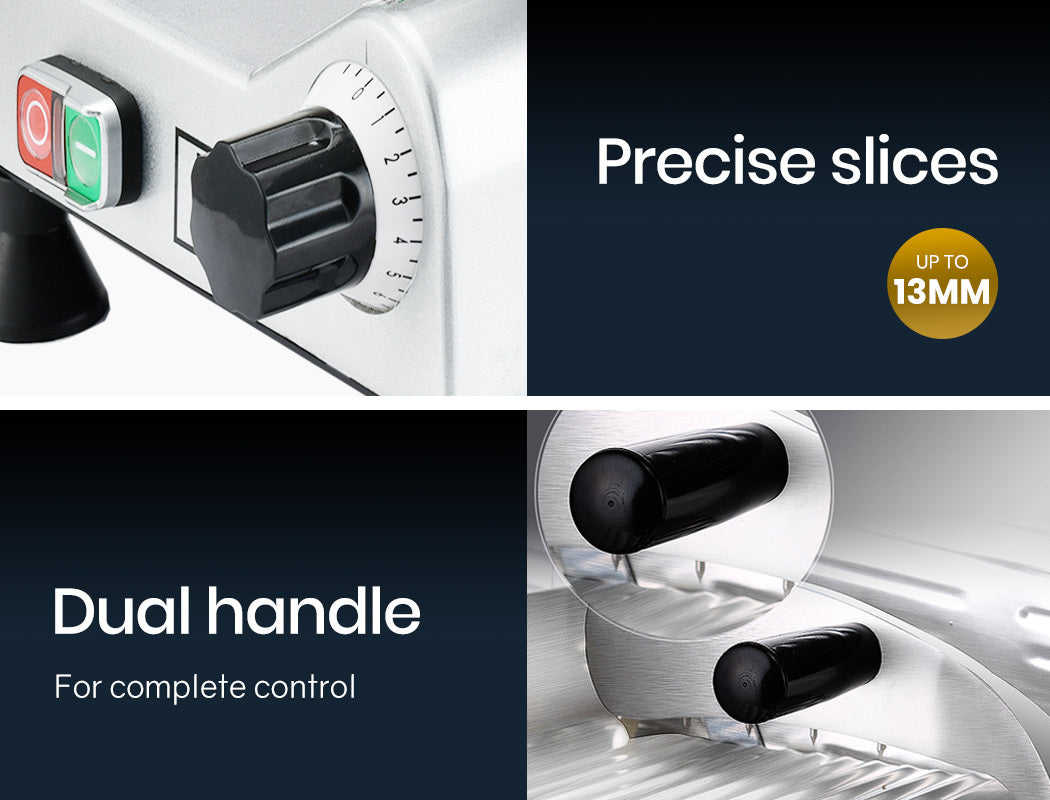 Eurochef Commercial Food Slicers are renowned for robust design, quality, and superb results, and the EUC-CMS-2 Electric Meat Slicer is no exception. It's crafted with food industry grade stainless steel components and boasts 280W copper core motor, making it a powerful, dependable machine with a compact footprint!