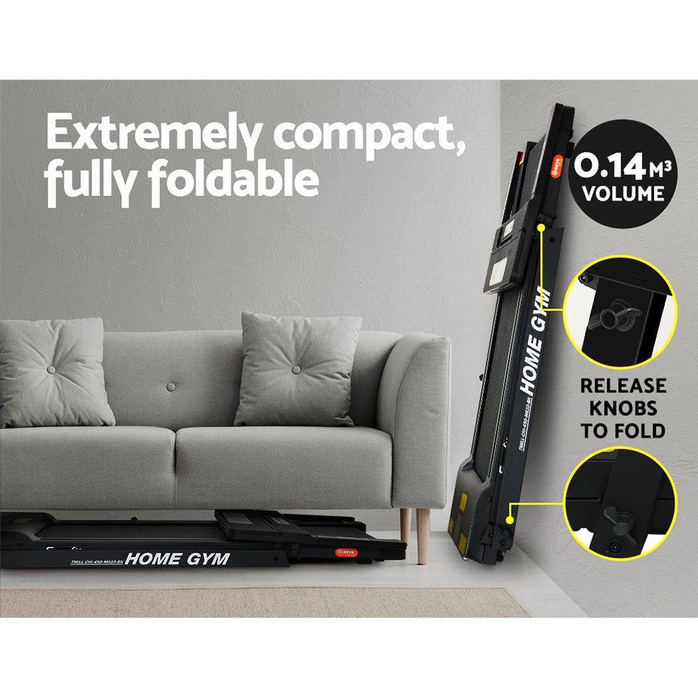 For a truly effective approach to weight loss and toning, our Everfit Fitness Treadmill is your perfect companion. Compact and sturdy with its powder-coated steel frame, the treadmill allows you to perform essential cardio exercises within the comfort of your home. The treadmill features 12 pre-set training programs designed to simulate natural terrain. A user-centric control panel with a digital LCD display lets you set up speeds of between 1km/h and 14km/h and monitor other parameters. Its powerful and energy-efficient motor produces smooth and seamless operation and the anti-slip belt and soft-grip handlebar make your session a comfortable and controlled experience. When all the hard work is done, fold and store away the compact treadmill away easily. Other great features include safety tether key, smooth wheels for easy mobility and tablet holder. For health results that matter, our fitness treadmill is the one to run to.