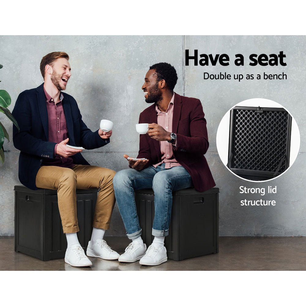 Say goodbye to clutter and welcome to neat and tidy with our Gardeon outdoor storage box. Made of eco-friendly PP plastic and durable steel, our storage box is designed to be sturdy and strong in all weather conditions. Easy to put together with no tools required, the 80-litre storage box provides ample space for a host of things, including gardening paraphernalia, toys, collectibles and anything else under the sun that fits in. It also comes with lid support braces for added convenience in keeping the lid open, and integrated handles on all four sides for easy mobility with the box. Better still, the storage box can easily double up as bench with a maximum weight capacity of up to 90kg. Not least, the rattan-like exterior gives this storage box a pleasant design that will sit well with any eclectic style inside or outside the home.