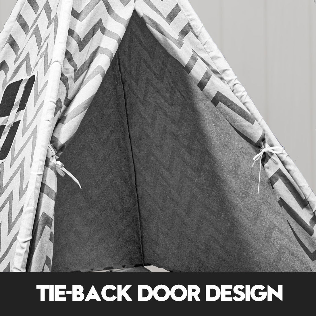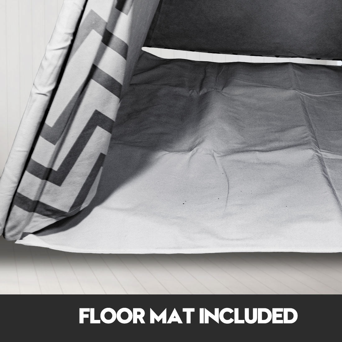 Entertaining the children will be easy with this realistic teepee. Ideal for creating magical places, elaborate games and inspiring physical activity. Suitable for both inside the house or outside in the garden, the adorable patterns and vibrant colours will make it a sure-fire hit at playtime. This teepee is finished in smooth wooden poles and covered in durable, cotton canvas. There is even a side window so you can keep an eye on what's happening from the outside, tie-down doors and a matching floor mat. Lovely to look at and lovely to think your children be entertained for hours!