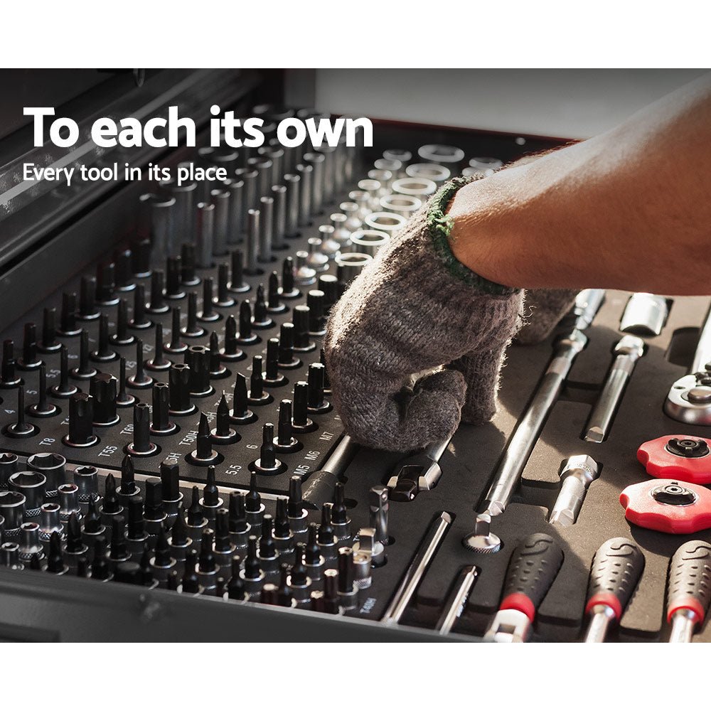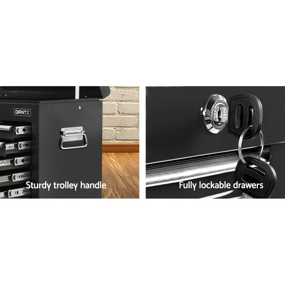 Our high quality 9 Drawers Tool Box Chest Black will keep all your tools close by and organised. Constructed with powder coating finish and sharp edge protection, this tool box is built to last long in the garage. Featuring with 9 drawers with various sizes and lockable drawer, it is ideal for storage your tools or other things.