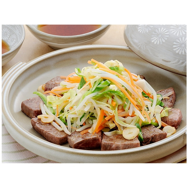 This Ginpo Mishima toban pot is made from heat resistant ceramic and is ideal for cooking a range of Japanese dishes. It has a stacking structure that overlaps perfectly, saving space around the kitchen, and it's microwave, oven, stove and dishwasher safe. Not IH compatible.