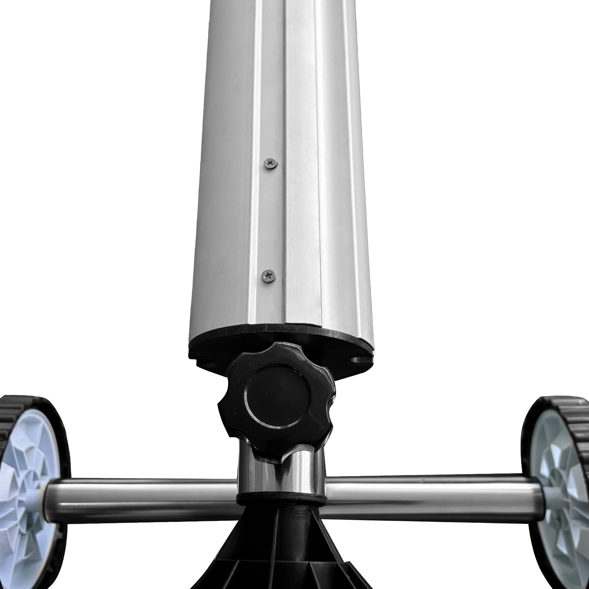 Effortlessly manage your pool cover with this telescopic pool roller, designed to make storage and setup a breeze. Extending up to 6.7m, its compatible with most swimming pool solar covers (cover not included) and comes complete with wheels, straps and clips for secure attachment.