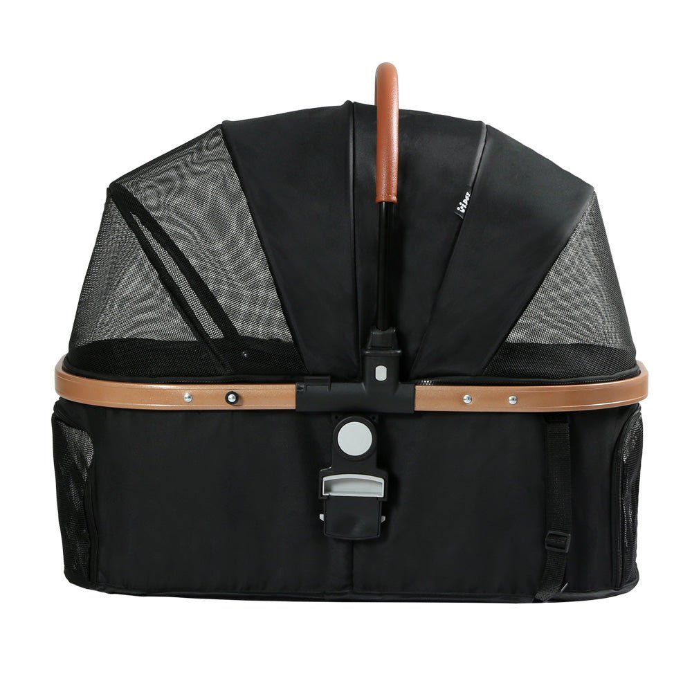 i.Pet's pet stroller is perfect to take your furry friend on strolls, especially if you're planning to take those slightly longer strolls that can get you sweating. Or it's a great accessory if your pet is suffering from mobility issues but wants to get outdoors. Featuring a spacious interior, our pet stroller can be used as a stroller, carrier, and car seat. It has adjustable front veil for UV protection, and the mesh window offers good visibility and allows proper airflow as you take your pet for a stroll. This pet stroller is made from high-quality 600D oxford and linen fabric with durable steel alloy frame and EVA wheels that ensures sturdiness and durability for longlasting use. It comes with 360˚ rotatable front wheels and lockable rear wheels for smooth movement and safety, and the built-in safety belt keeps your pets safe. Our pet stroller is quite spacious that ensures your pet's comfort and comes with a removable cushion for additional support. It also has a large storage basket underneath that offers ample space to store nitty-gritty stuff. Furthermore, this water-resistant pet stroller is easy to install and features a one-step fold mechanism that allows easy storage, and the foam handle makes it extremely comfortable for you as you tour them at the park or around the neighbourhood. Without any hesitation, shop our reliable and durable i.Pet's pet stroller for your furry companions.