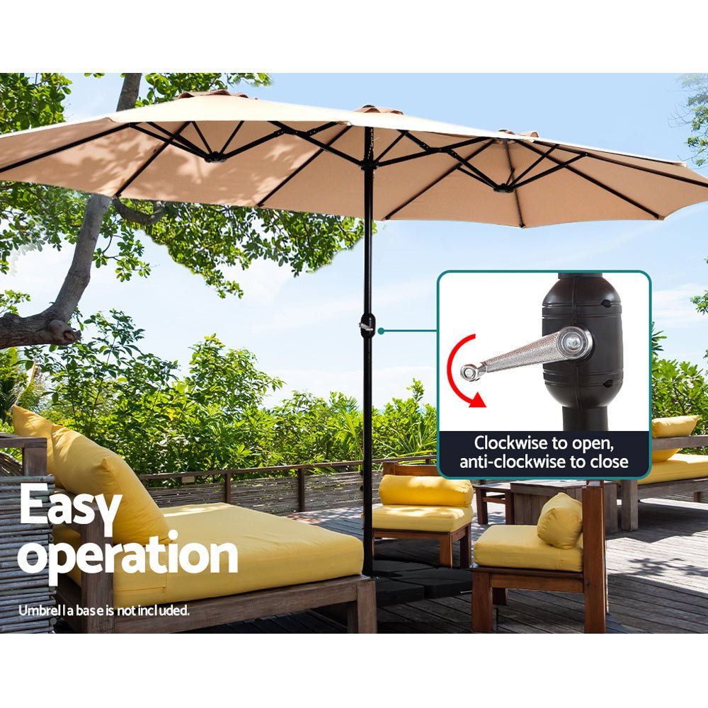 Instahut Outdoor Umbrella Twin Umbrella Beach Stand Base Garden Sun Shade 4.57m