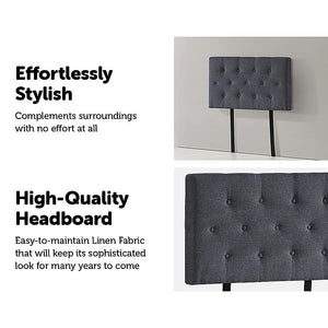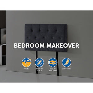This headboard for standard Single-sized bed frames is created with quality materials, including easy-to-maintain Linen Fabric that will maintain its sophisticated look for many years to come. This particular model comes with elegant stitching accents that provide just the right level of understated pop. A neutral grey will blend seamlessly with a wide variety of bed frames and other bedroom furniture.