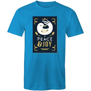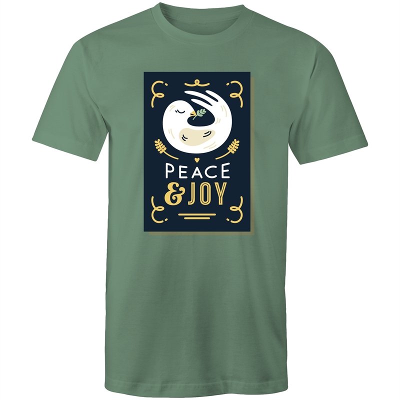 Our Men's Peace And Joy T-shirtis made from a beautifully soft 100% cotton. Super comfortable, super soft, super durable - you really can't go wrong with this tee. Proudly printed in Melbourne via the latest DTG printing technology you'll not only get a super durable and comfy t-shirt but also a professional print to match.