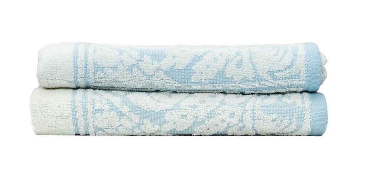 Complete your home with these elegant jacquard bath towels. Made with super-soft Premium Cotton, these luxurious towels are lightweight, fluffy, yet still super absorbent for a luxurious bath-time experience. The beautiful blue & white colour and design add personality to your bathroom.