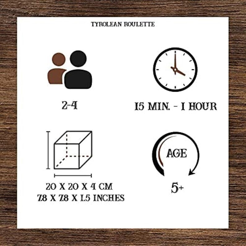FUN board spinning game for 2-3-4 players: just spin the top and try get highest score A game for the whole family. Age: 6+ Dimensions: (w x l x h) : 19.50×19.50×3.5 Teak/Samena wood. Handmade in Thailand Weight (g) : 390g