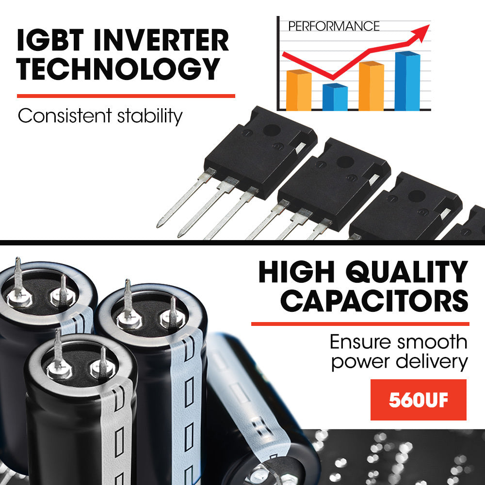 Introducing The Rossi NEXT GEN welders, more power, more versatile, more efficient. The MIG-140 is a powerful 140 Amp DC MIG/MAG/MMA/Arc/TIG Lift-Start inverter welder with iGBT technology. This welder handles most steel alloys and highly conductive metals. It is the must-have multi-purpose welder for anyone who needs a powerful, lightweight, portable welder.
