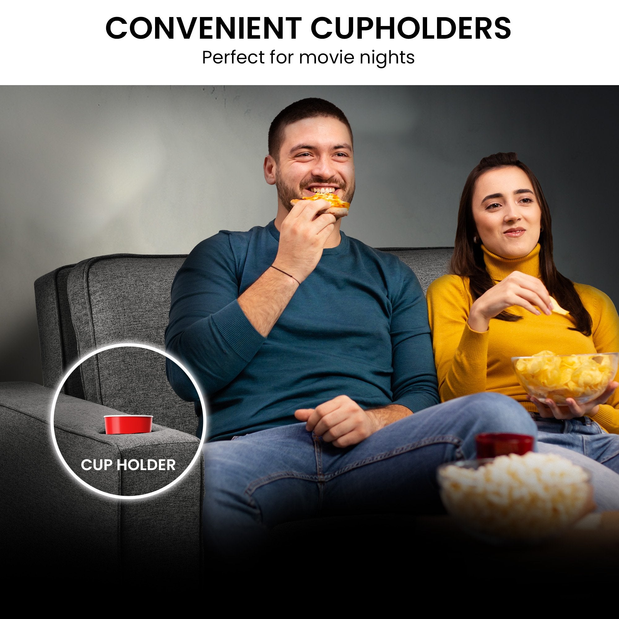 Sarantino Hoffman Convertible Sofa Bed | Dark Grey | Cushions & Cupholders | Scandinavian Wooden Frame & Legs