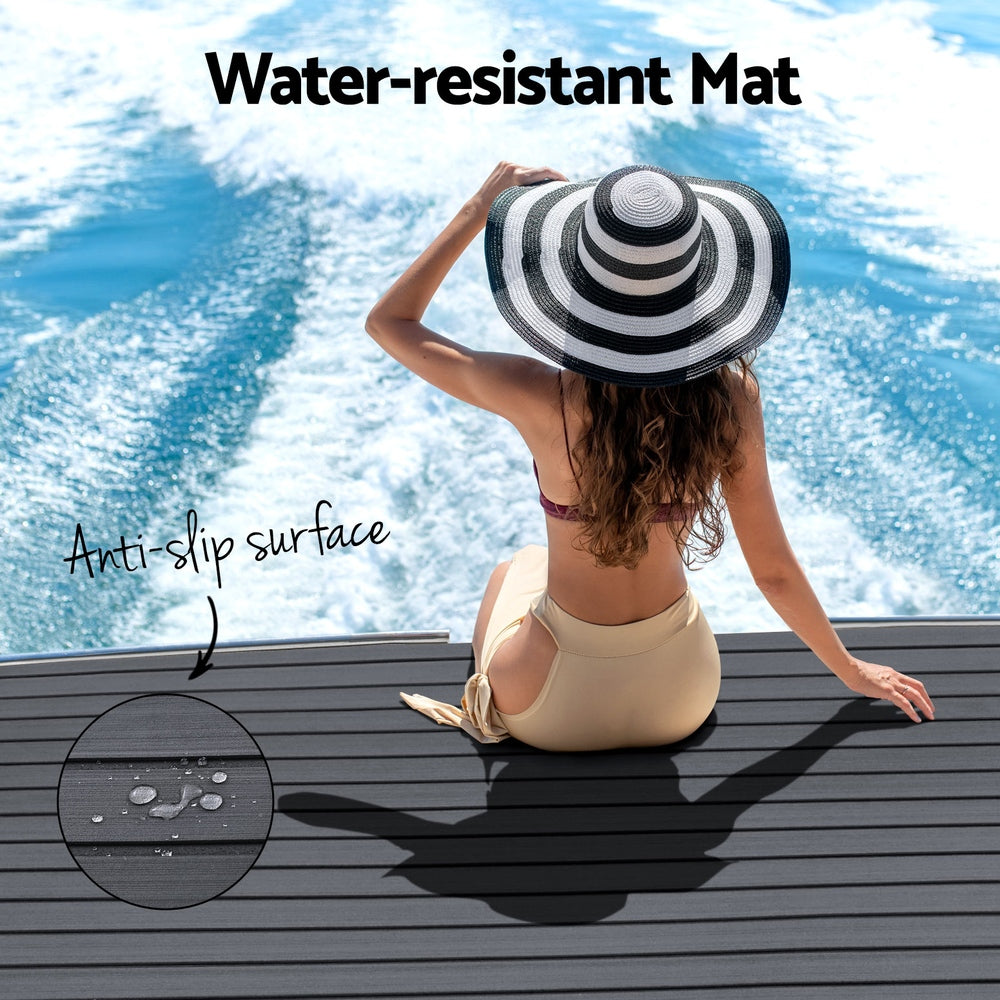 Whether you're looking to upgrade or completely renovate your boat, you'll love the easy-to-use EVA Boat Flooring from Seamanship. Made from high-quality EVA foam with a strong self-adhesive backing, this flooring is not only durable but also incredibly easy to install yourself. Designed to withstand various weather conditions, our weather-resistant mat ensures long-lasting performance. The anti-slip surface provides excellent traction, keeping you and your passengers safe even in wet conditions. With its modern strip grooves design, our Seamanship Boat Flooring offers both functionality and style for your boating adventures. Simply cut your flooring to shape, clean and dry your decking surface, remove the adhesive backing and stick gently to your deck. Enjoy summer sailing with your brand-new Seamanship EVA Boat Flooring.