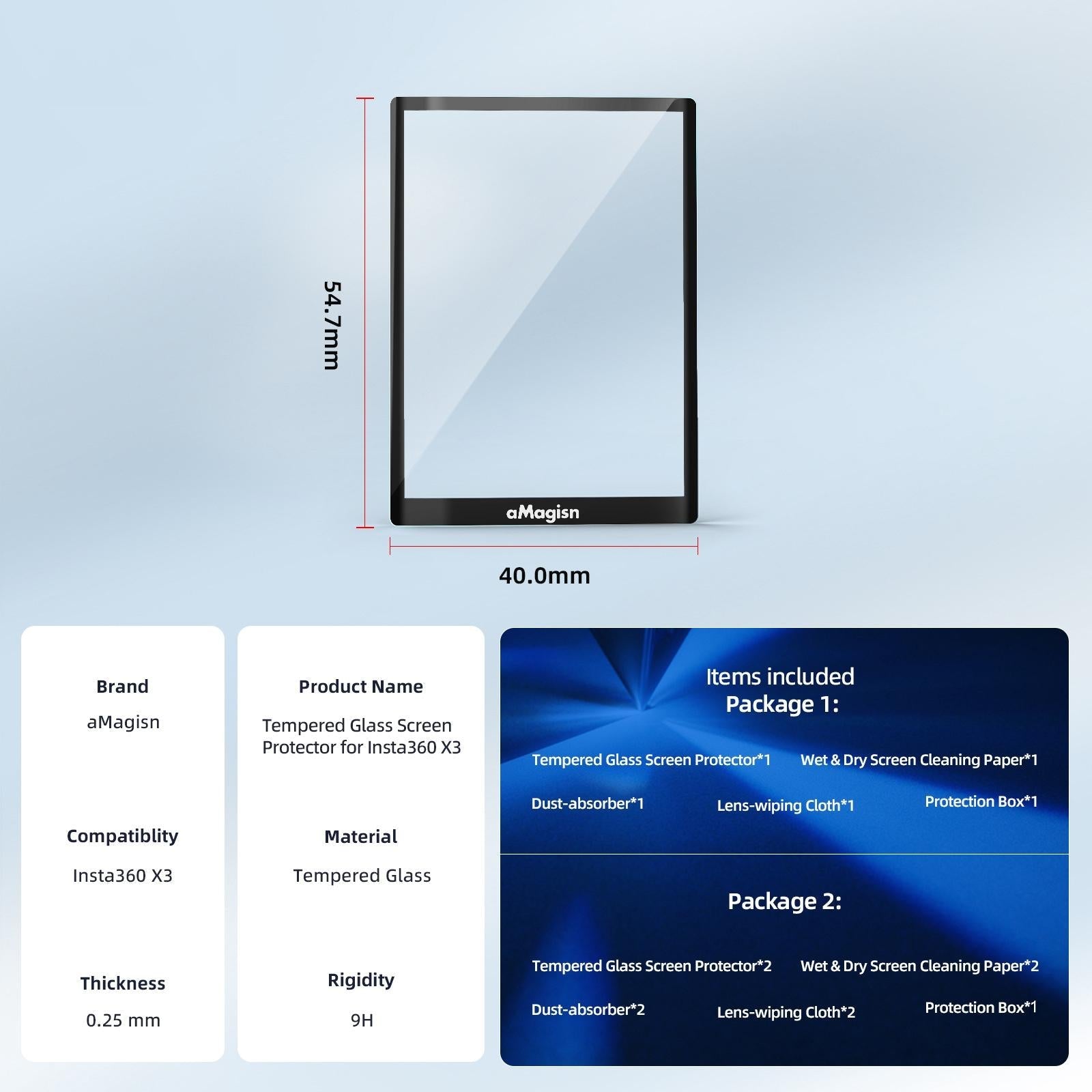 Tempered Film Protection for Insta360 X3 Sports Camera | 1 Set