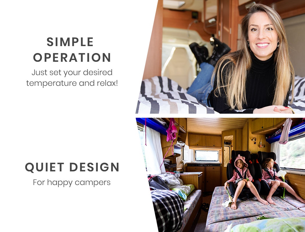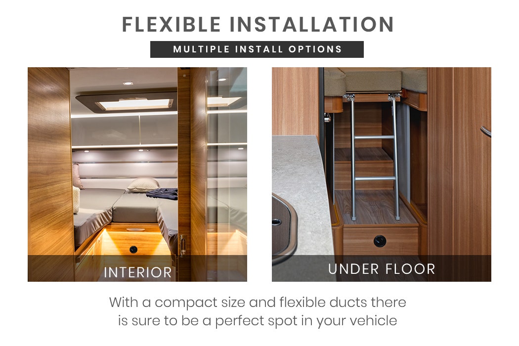 The Thermomate offers powerful, efficient performance thanks to a unique heatsink design that is cast from premium 1050 grade aluminum offering superior thermal conductivity. Whether you're in a caravan, motorhome, camper trailer, truck or boat your space will be toasty in no time, and any frost on windows will quickly disappear. Once the target temperature is reached, the Thermomate is surprisingly quiet, so you’ll have happy campers and everyone will enjoy a good night’s sleep.