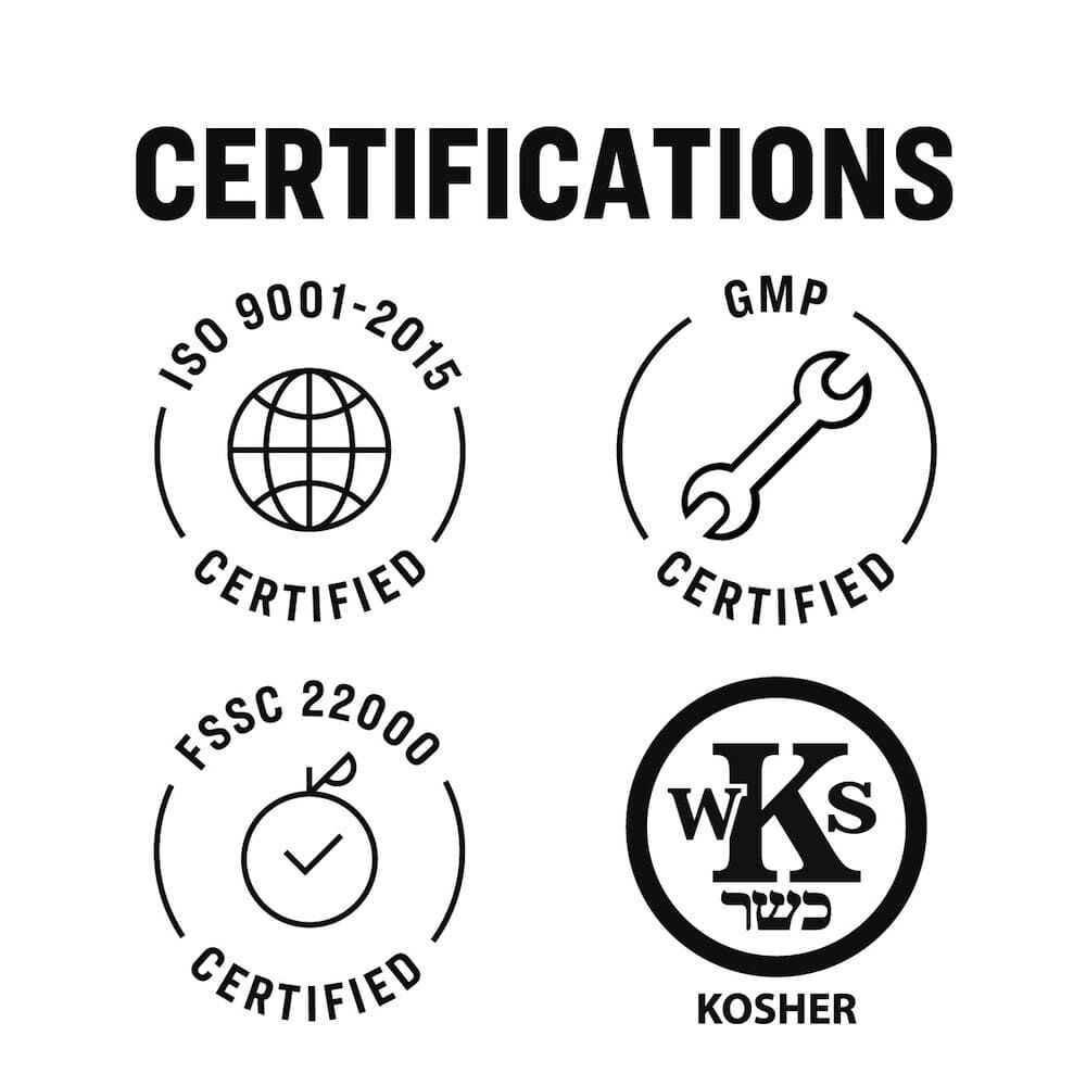 Quality & Safety: GMP facility blended | FSSC 22000 & ISO 9001:2015 certified | Food-safe | Non-cannabis derived