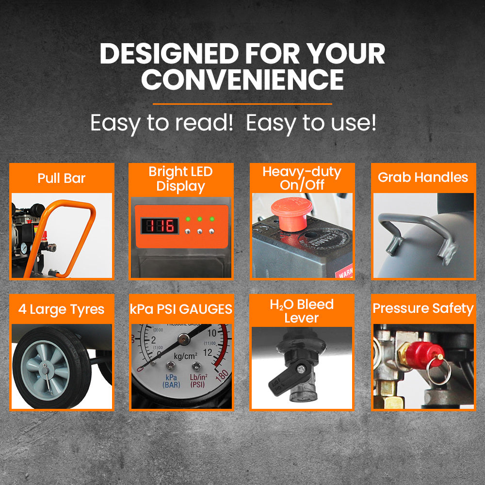 The precise easy-to-read tank pressure and line pressure gauges take the guesswork out of filling and using your air compressor.