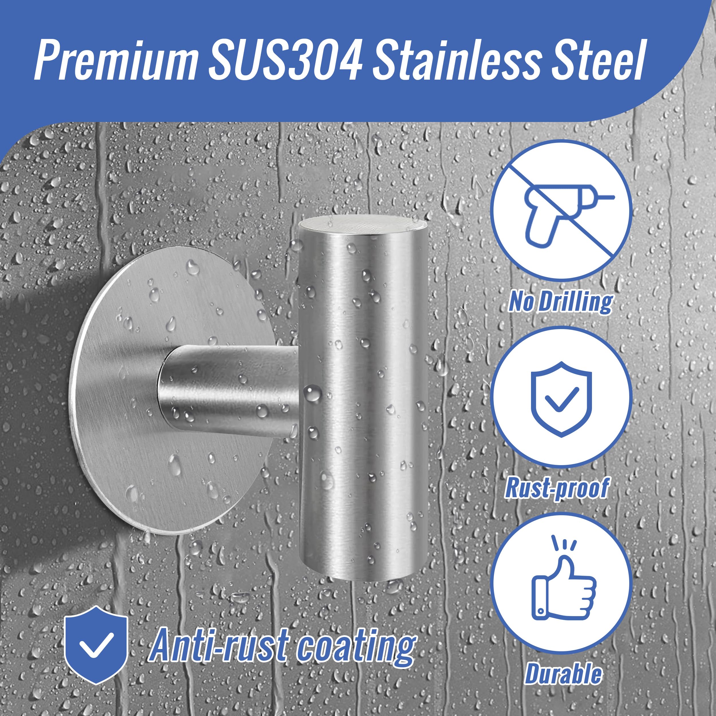 MATERIAL: High quality 304 stainless steel towel hooks, anti-rust shower hooks. Strong metal wall hooks, durable. Round design, suitable for modern kitchen, bathroom, toilet, bedroom, office, library, living room, garage, etc