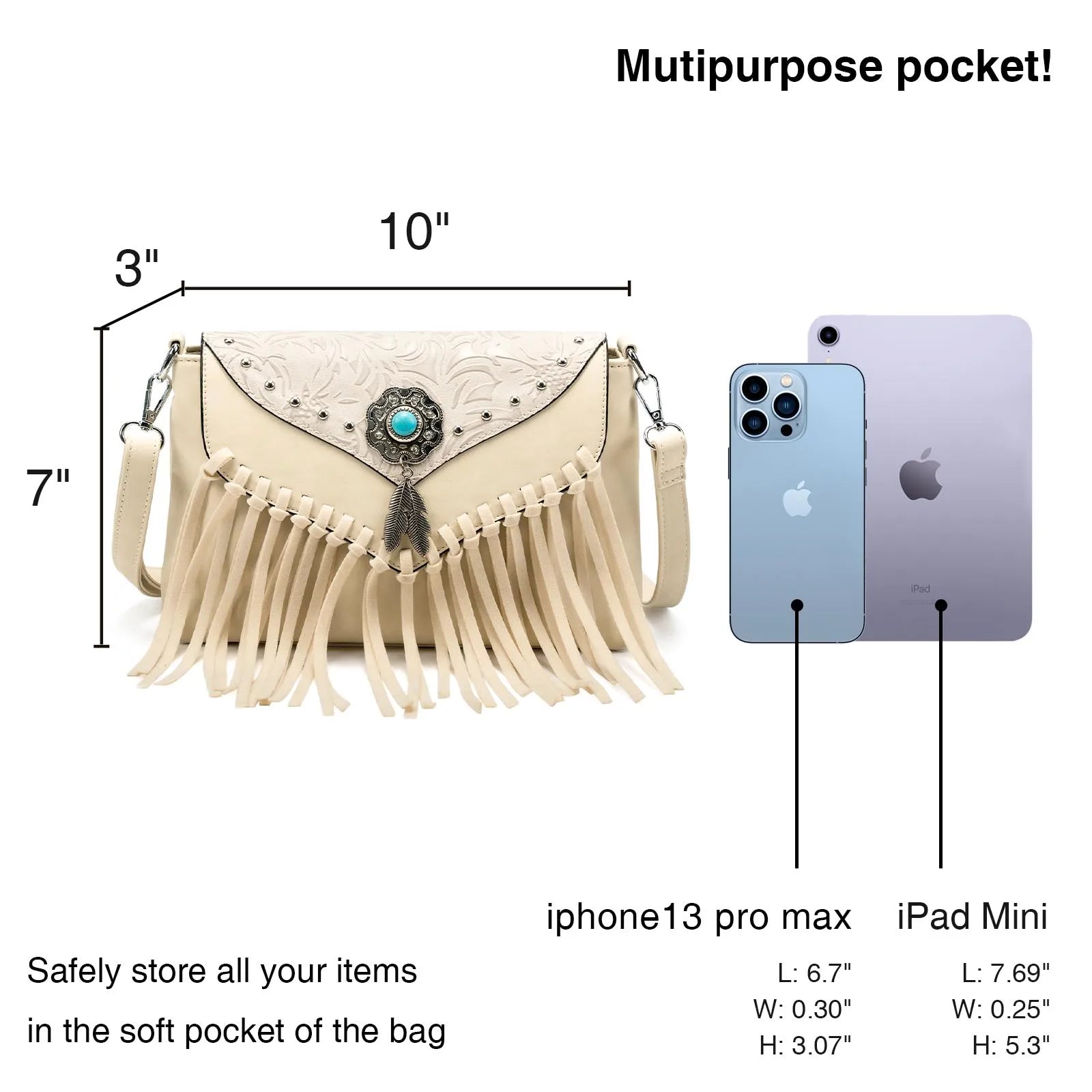 To enhance its bohemian allure, this festival bag is embellished with playful tassels that sway with every step, adding movement and personality to your look. With its spacious interior and convenient design, you can carry all your essentials with ease, ensuring that you're always prepared for whatever the day may bring.