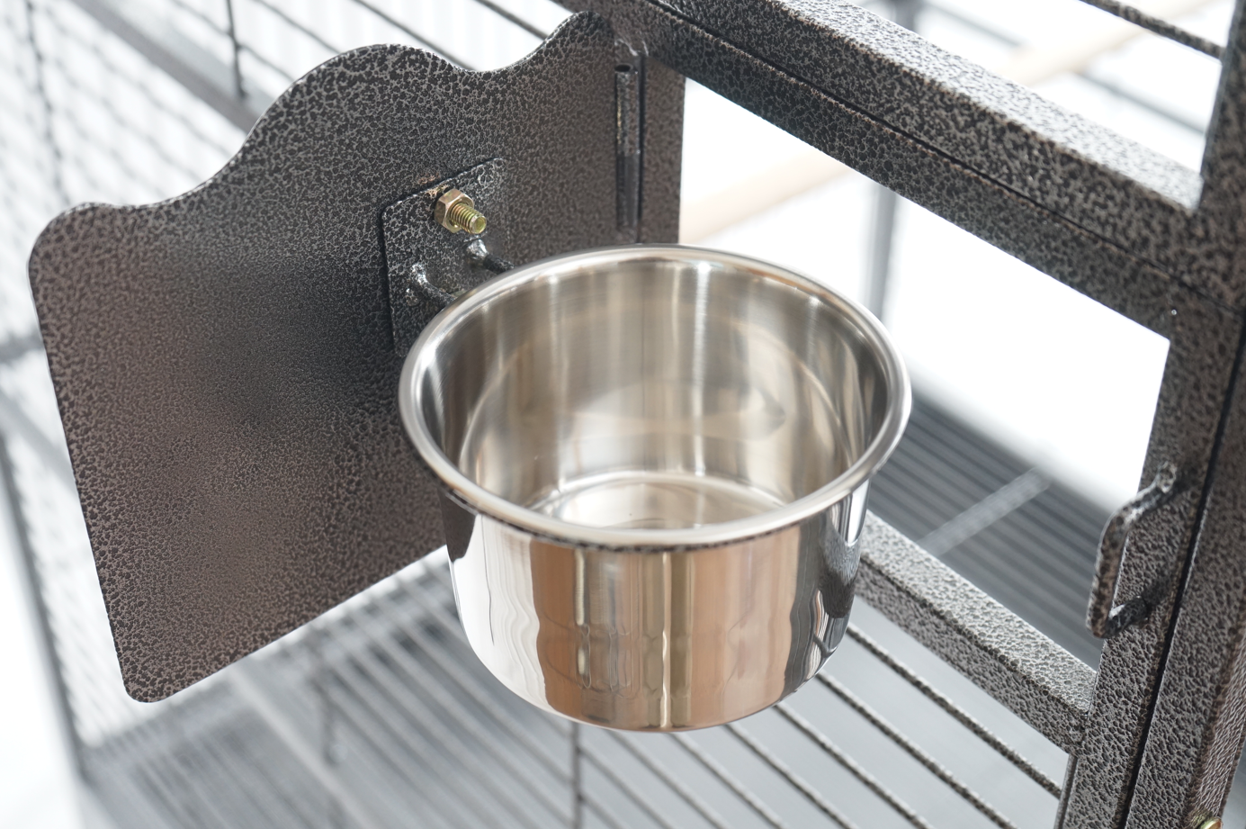 Taking care of them is made easy too with one large access door and four side doors to reach inside four food and water bowls and take them out for refills or cleaning. Cleaning is hassle-free with the slide-out top and bottom tray that can also be removed. And your feather friends will feel extremely safe too with a set of secured locks to keep prying predators away.